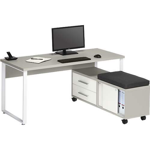 Der höhenverstellbare schreibtisch ist bereits mit einem kabeldurchlass, einer kabelschlange und einer kabelwanne ausgestattet, die alle zusammen ein sauberes kabelmanagement gewährleisten.